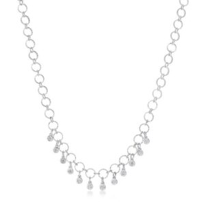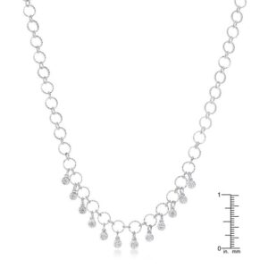 Theres something to be said for elegance and this incredible necklace is as elegant as it gets. The lovely shine of rhodium plating starts things off and rhodium is that same metal that gives white gold its lovely look. Twelve round clear cubic zirconia charms add flare and ensure that everyone will notice you the next time you go out and wear it