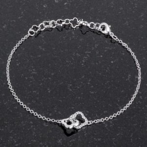 • .1 Ct Rhodium Bracelet with Interlocking Floral Links