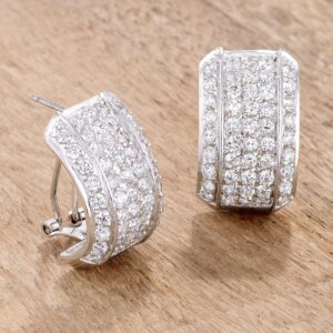 2.9Ct Dazzling Rhodium Plated Pave Clear CZ Huggie with Omega Back
