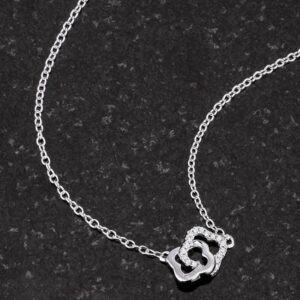This necklace is crafted with rhodium plating and thats the same thing that gives white gold its lovely shine. The interlocking links at the bottom have a floral pattern for a center almost like a four leaved clover. Of course with the cubic zirconia adding sparkle youll already have all the luck you need on your next night out!