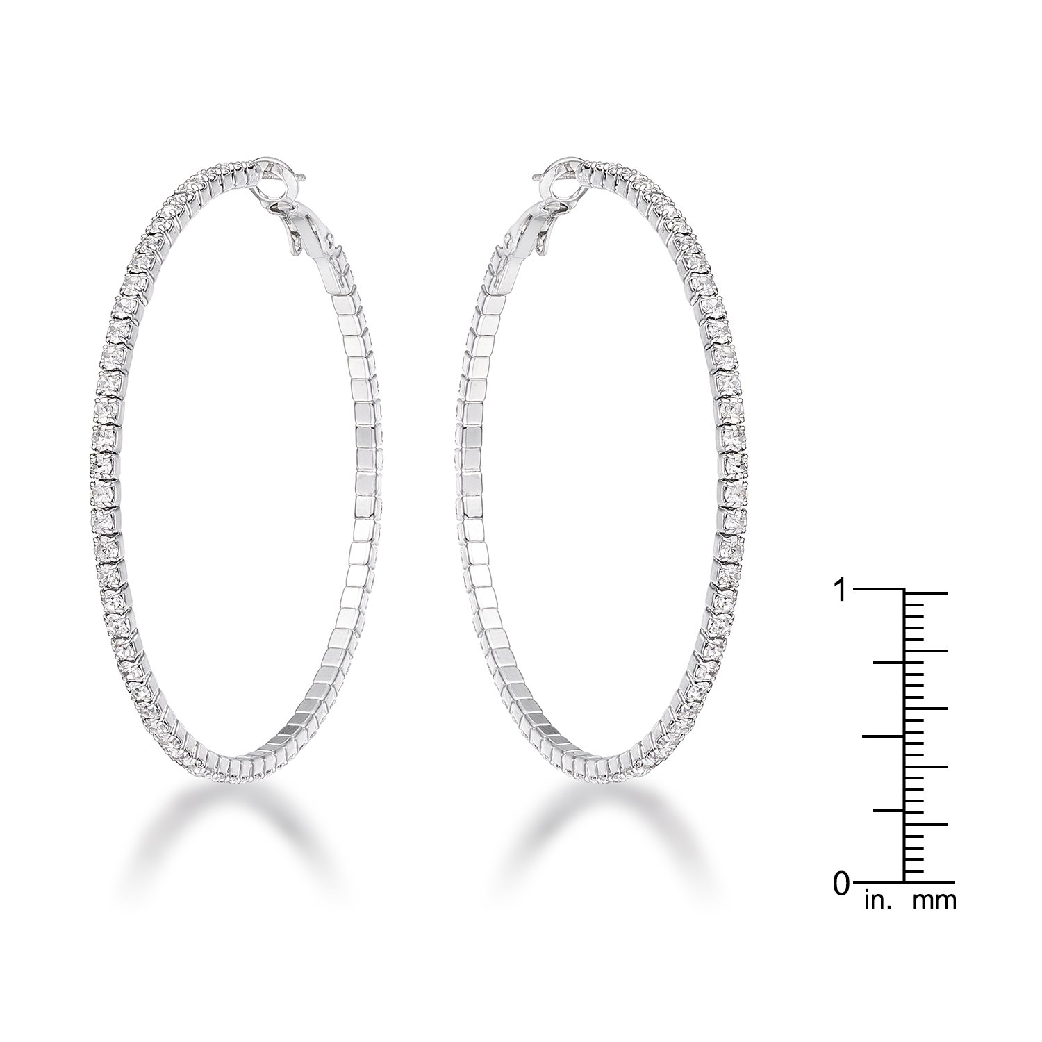 7mm Cz Rhodium Plated Drop Hooplet Earrings