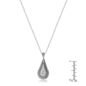 This necklace is plated with rhodium the same metal that gives white gold its shine. The lovely teardrop pendant immediately draws the eye because of the generous showing of clear cubic zirconia. The effect is dazzling and is certain to call a great deal of attention to the girl wearing it the next time she goes out on the town.