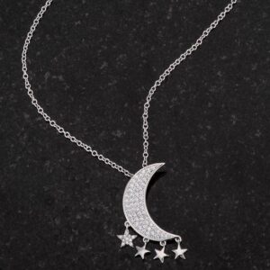 .6Ct Dazzling Rhodium Moon and Stars Necklace with CZ
