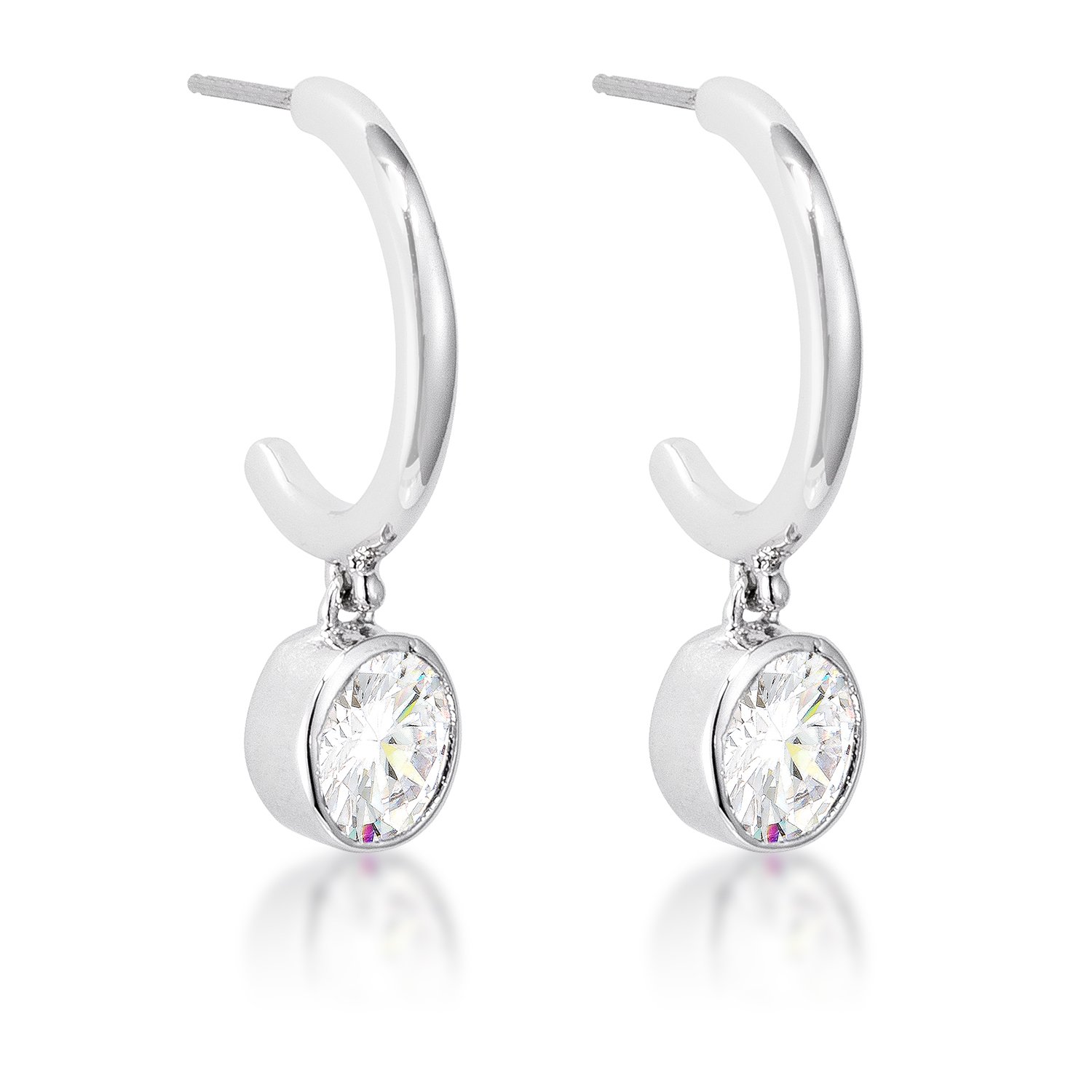 7mm Cz rhodium plated Drop Hooplet Earrings