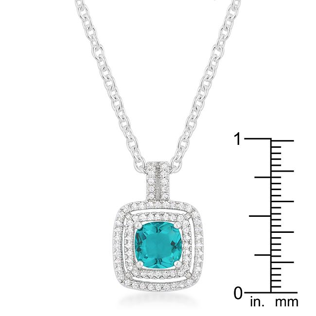 This pendant features a bright blue aqua cubic zirconia that radiates elegance. Our genuine rhodium finish is achieved using an electroplating process that coats the item with heavy layers of rhodium a close cousin to platinum which gives our jewelry a platinum luster.