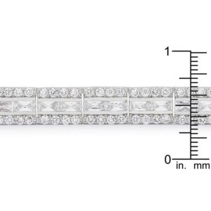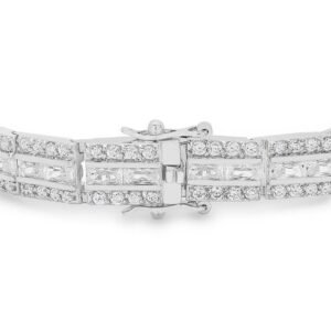 Fashioned in luminescent silver tone and three rows of assorted shimmer our Balboa Cubic Zirconia Bracelet lends sassy tones to classic refinement. Our genuine rhodium finish is achieved using an electroplating process that coats the item with heavy layers of rhodium a close cousin to platinum which gives our jewelry a platinum luster.
