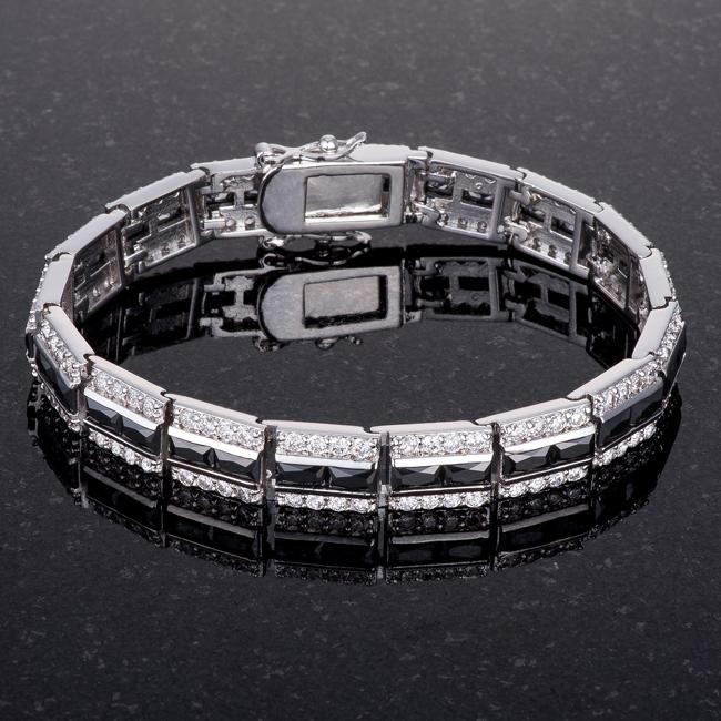 Fashioned in luminescent silver tone and three rows of assorted shimmer our Balboa OnyxCubic Zirconia Bracelet lends sassy tones to classic refinement.
