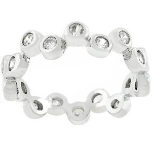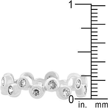 Round cut cubic zirconia are bezel set around this unique eternity style. Genuine Rhodium Plating is achieved using an electroplating process that coats the item with heavy layers of rhodium a close cousin to platinum which gives our jewelry a platinum luster.