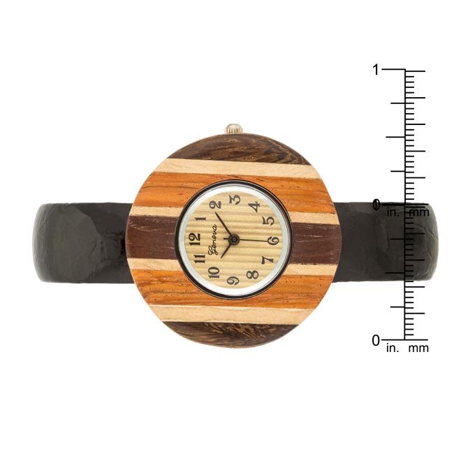 Brenna Black Wood Inspired Leather Cuff Watch