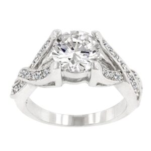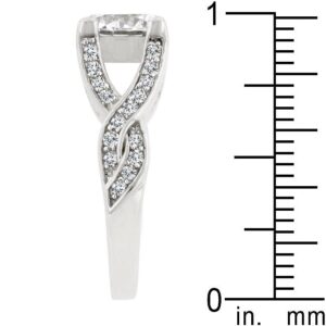 The Brilliant Twist Engagement Ring contains a brilliant round cut cubic zirconia and a stunning silver tone in a twisted cubic zirconia finish. Genuine Rhodium Plating is achieved using an electroplating process that coats the item with heavy layers of rhodium a close cousin to platinum which gives our jewelry a platinum luster.