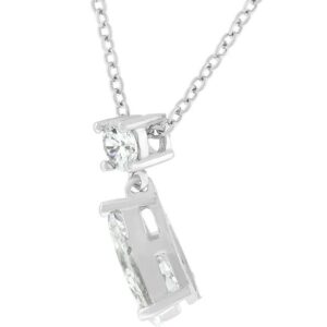 The Chandelier Pear Cubic Zirconia Pendant goes with everything from you’re favorite tank top and jeans to your little black dress. Its pear cubic zirconia hangs with beauty from anther radiant round cut cubic zirconia. Its the perfect addition to your jewelry box. Genuine Rhodium Plating is achieved using an electroplating process that coats the item with heavy layers of rhodium a close cousin to platinum which gives our jewelry a platinum luster.