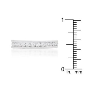 This classic channel set style is your next go-to band. Genuine Rhodium Plating is achieved using an electroplating process that coats the item with heavy layers of rhodium a close cousin to platinum which gives our jewelry a platinum luster.