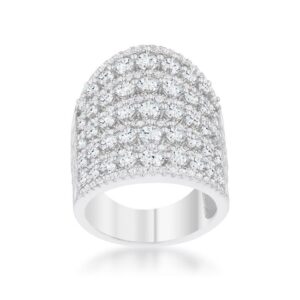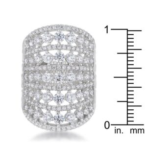 A mix of clear stones accent a contemporary wide-band cocktail style for a feminine and glamorous look. A classically beautiful statement piece.