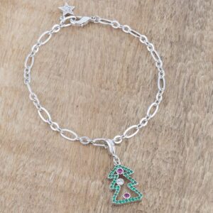 Clear fuchsia and emerald stones accent a Christmas Tree design in this adorable holiday charm bracelet; the perfect piece of sparkle for your festive ensembles. We offer different color and style variations. Browse our selection and youll definitely find your unique look.