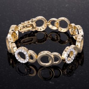 Shimmering circles perfect our Circle Bijoux bracelet. Adorned in simple shapes glistening cubic zirconia and two toned hues this piece reinvents glamorous simplicity at the lock of its clasp.