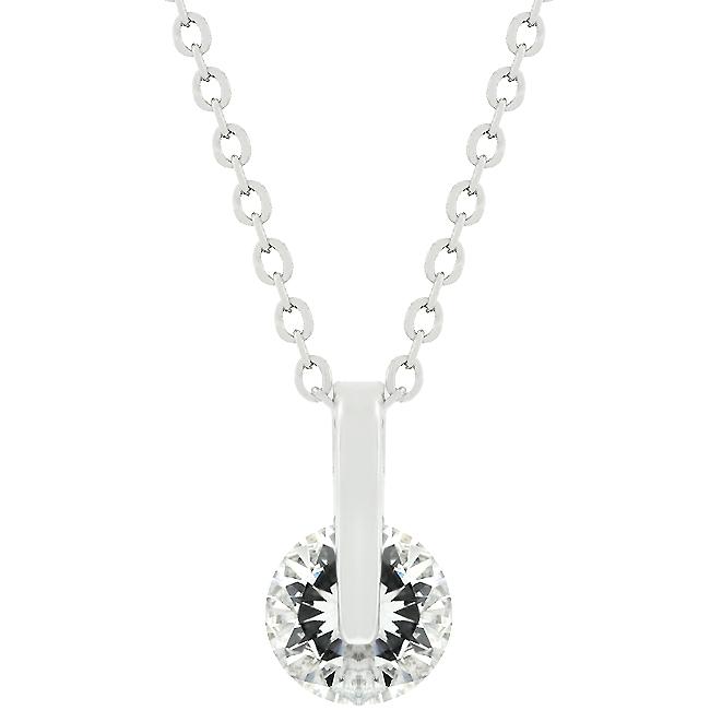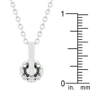 This solitaire pendant features a clear round cubic zirconia being grasped in the middle. Genuine Rhodium Plating is achieved using an electroplating process that coats the item with heavy layers of rhodium a close cousin to platinum which gives our jewelry a platinum luster.