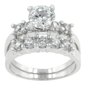 Our Classic Wedding Set has stood the test of time. This ever popular style will remain a staple of our wedding line. Our genuine rhodium finish is achieved using an electroplating process that coats the item with heavy layers of rhodium a close cousin to platinum which gives our jewelry a platinum luster.