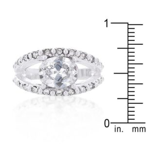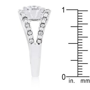 Feminine and elegant. Simple and sophisticated. Fashioned in luminous cubic zirconia this engagement ring is a lovely addition to any collection. Our genuine rhodium finish is achieved using an electroplating process that coats the item with heavy layers of rhodium a close cousin to platinum which gives our jewelry a platinum luster.