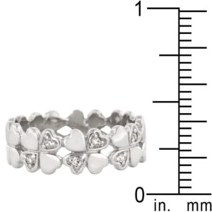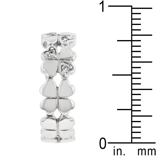 The Lucky Clover Ring Band features 4 small hearts that make up an individual lucky clover in this .925 sterling silver base metal eternity ring. Genuine Rhodium Plating is achieved using an electroplating process that coats the item with heavy layers of rhodium a close cousin to platinum which gives our jewelry a platinum luster.