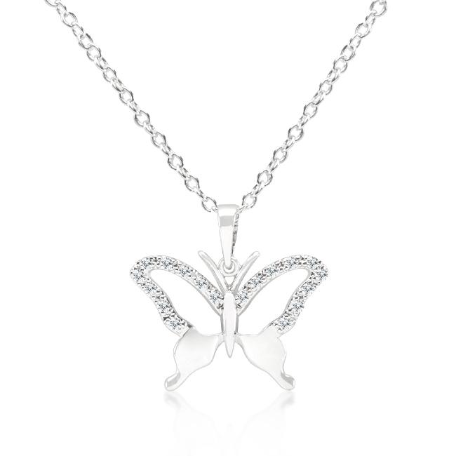 Add a hint of sparkling menagerie to your look with this silver toned necklace featuring a delicate cubic zirconia Butterfly pendant Our genuine rhodium finish is achieved using an electroplating process that coats the item with heavy layers of rhodium a close cousin to platinum which gives our jewelry a platinum luster.