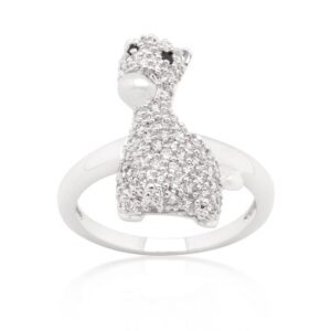 This statement animal ring features an adorable Giraffe with cubic zirconia encrusted accents. Our genuine rhodium finish is achieved using an electroplating process that coats the item with heavy layers of rhodium a close cousin to platinum which gives our jewelry a platinum luster.