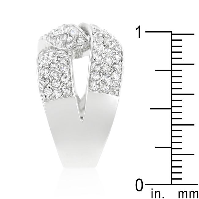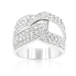 Nearly knotted to perfection the cubic zirconia Knot Ring is the perfect piece to dress up wardrobes for all occasions– from cocktail hour to holiday potlucks throw it on for instant festivity. Our genuine rhodium finish is achieved using an electroplating process that coats the item with heavy layers of rhodium a close cousin to platinum which gives our jewelry a platinum luster.