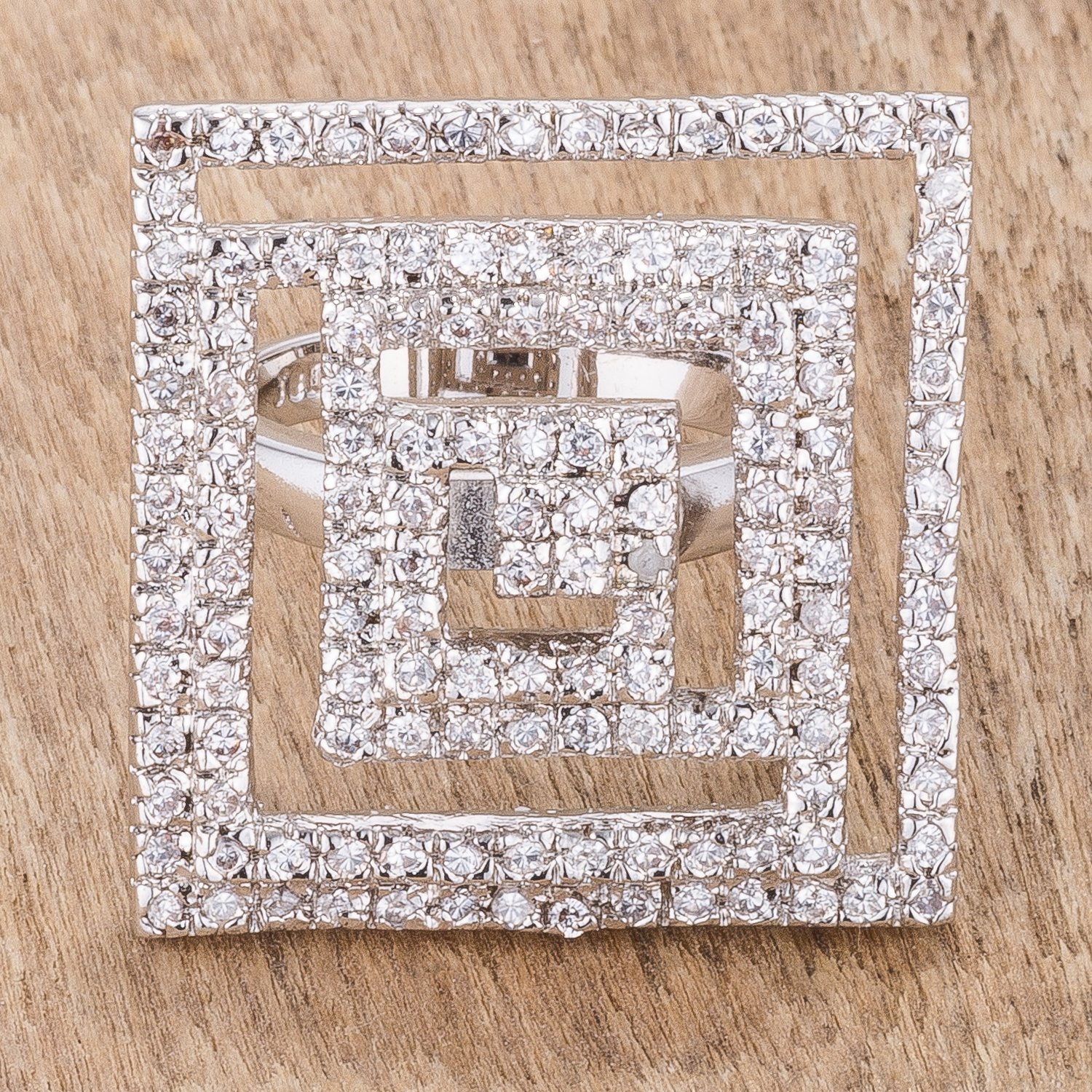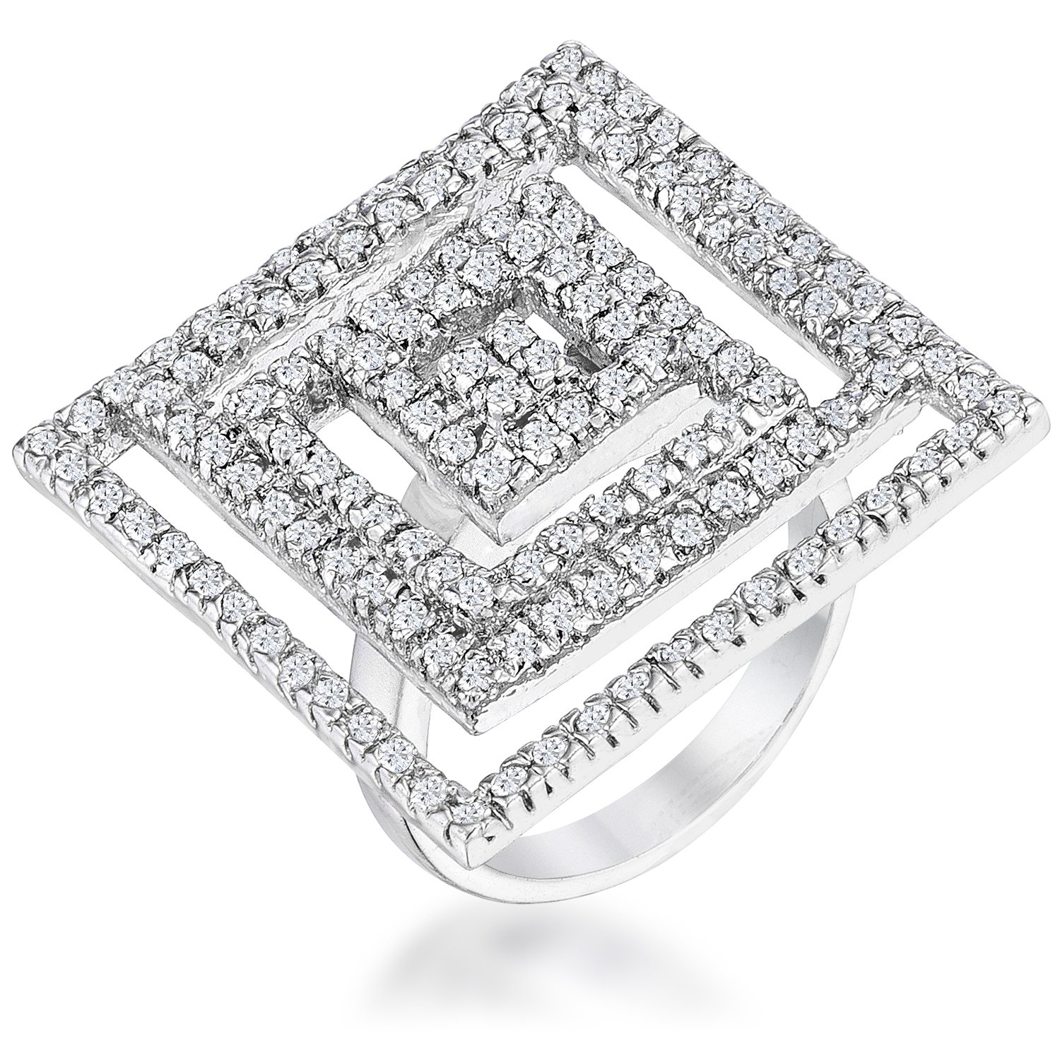 Over a hundred cubic zirconia glisten brightly on this cocktail style. Our genuine rhodium finish is achieved using an electroplating process that coats the item with heavy layers of rhodium a close cousin to platinum which gives our jewelry a platinum luster.
