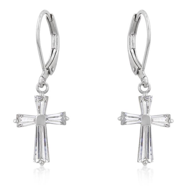 Cubic Zirconia Rhodium Plated Finish Cross Earrings