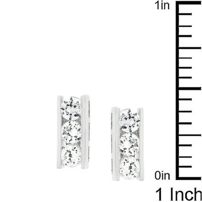 Sparkling round stones tier on top of each other in this channel set sophisticated stud pair. Our genuine rhodium finish is achieved using an electroplating process that coats the item with heavy layers of rhodium a close cousin to platinum which gives our jewelry a platinum luster.