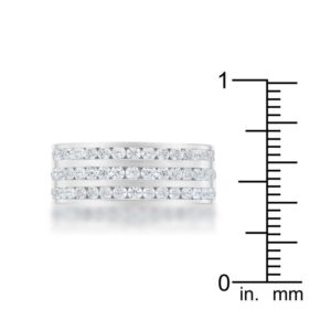 Three channel set rows are saturated with clear CZ stones in this sophisticated eternity band. Classically designed.