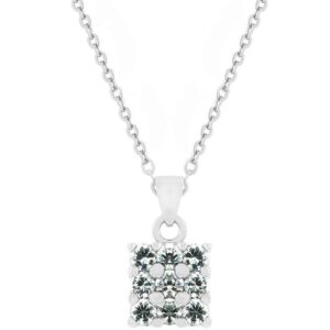 Reversible pendant with one side consisting of a solitaire emerald cubic zirconia and the reverse side consisting of 9 clear round cubic zirconia. Genuine Rhodium Plating is achieved using an electroplating process that coats the item with heavy layers of rhodium a close cousin to platinum which gives our jewelry a platinum luster.