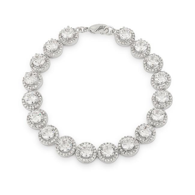 The Elegant Halo Edition Classic Bracelet features glistening halo cubic zirconia. Our genuine rhodium finish is achieved using an electroplating process that coats the item with heavy layers of rhodium a close cousin to platinum which gives our jewelry a platinum luster.