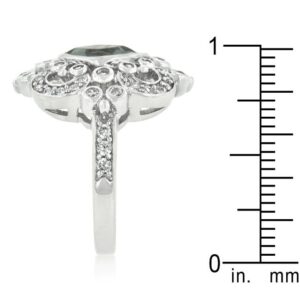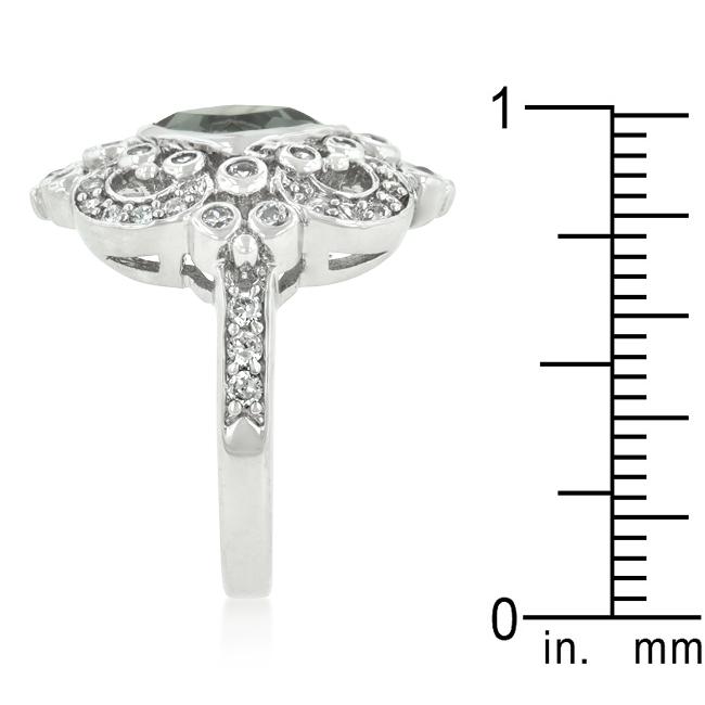 This elegant crest ring features smokey and clear cubic zirconia. Our genuine rhodium finish is achieved using an electroplating process that coats the item with heavy layers of rhodium a close cousin to platinum which gives our jewelry a platinum luster.