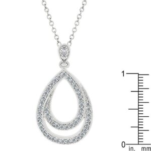 The name says it all. Evening Teardrop showcases its cubic zirconia in a channel setting. Two interflowing designs simulate a teardrop look. This style is contemporary yet timeless. Not to mention its cute. Also check out Evening Teardrop’s matching earring set Evening Drop. Genuine Rhodium Plating is achieved using an electroplating process that coats the item with heavy layers of rhodium a close cousin to platinum which gives our jewelry a platinum luster.