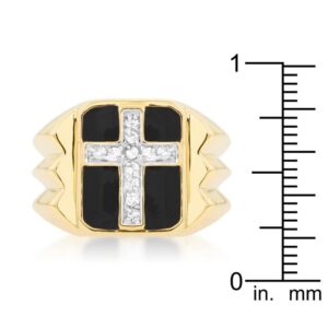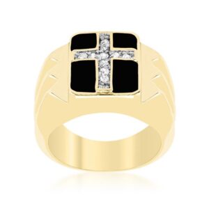 The Faceted Cross Cubic Zirconia Ring is made with him in mind. It will add that bit of luster and glitz needed for any outfit. Our two-tone and tri-tone process use 18k gold that electroplated coating the item with heavy layers of 18k yellow gold giving it that 14k hamiliton gold polished look. The silver tone is achieved by applying a heavy coating of genuine rhodium to the item giving is a lustrous silver tone high polish.