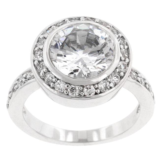 The Ritz is blinged out with clear cubic zirconia on its shoulders and on top. A three carat center stone is the main attraction and its accented by smaller cubic zirconia set on a silver tone. Genuine Rhodium Plating is achieved using an electroplating process that coats the item with heavy layers of rhodium a close cousin to platinum which gives our jewelry a platinum luster.