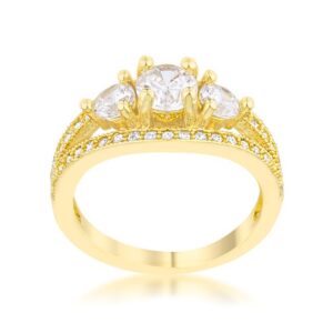 Clear stones accent the setting of a modern trio ring for a modernly classic look.