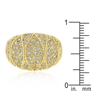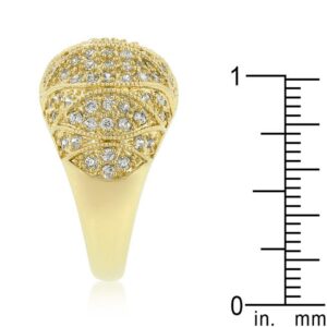 This exquisite and one-of-a-kind cocktail ring features an astounding set of clear cubic zirconia pave set. 18k plated gold is achieved using an electroplating process that coats the item with heavy layers of 18k Yellow Gold and color-treated to display a perfect 14k Hamilton gold color.