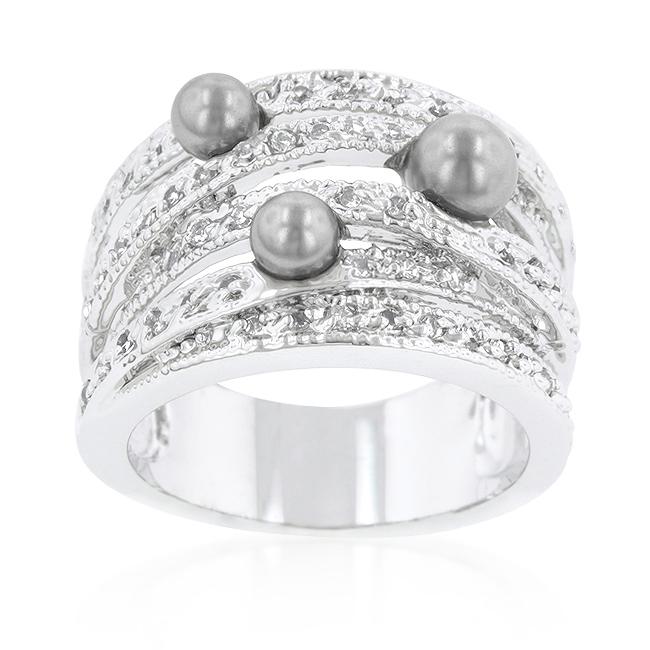 Perfect for day or night this ring’s luminous faux pearls lined up fabulously in an intricate silver tone setting. Our genuine rhodium finish is achieved using an electroplating process that coats the item with heavy layers of rhodium a close cousin to platinum which gives our jewelry a platinum luster.