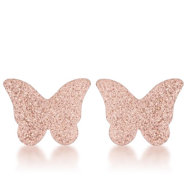 These beautiful butterfly stud earrings are set in Stainless Steel and plated with a beautiful glittered Rose Gold plating. A classic set of studs with a modern twist.