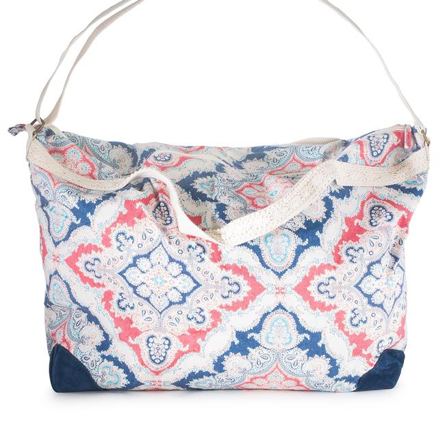 Karen Blue Multicolor Floral And Lace Duffle Bag