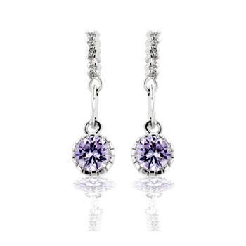 Light lavender stones delicately dangle in a refined drop earring design. Our genuine rhodium finish is achieved using an electroplating process that coats the item with heavy layers of rhodium a close cousin to platinum which gives our jewelry a platinum luster.