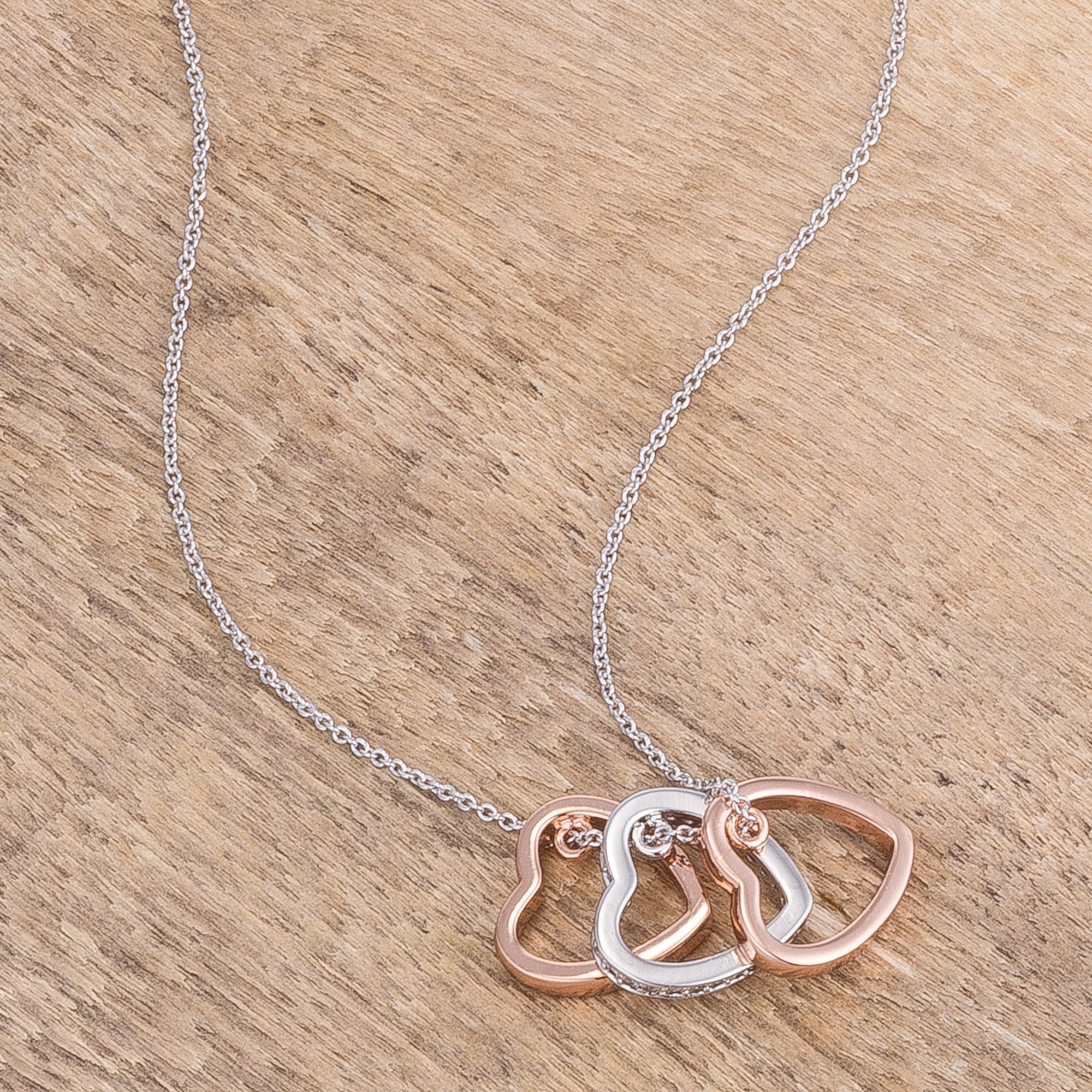 Clear stones accent three heart pendants two inrose goldtoneand one in rosesilver tone. The perfect gift for every girl.