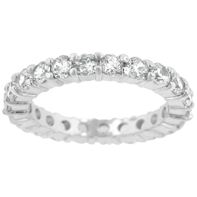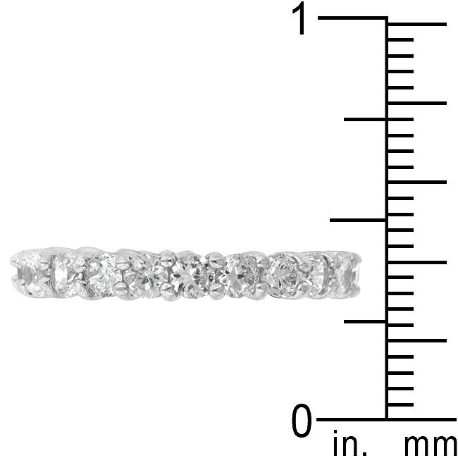 Mini Elizabeth Eternity Band features genuine rhodium plating to .925 sterling silver base metal. Twenty-one stones embellish this wonderful ring. Our genuine rhodium finish is achieved using an electroplating process that coats the item with heavy layers of rhodium a close cousin to platinum which gives our jewelry a platinum luster.
