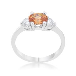 A pair of clear round cut stones accompany a champagne oval cut center stone in this elegantly simple 1.2 carat engagement ring.