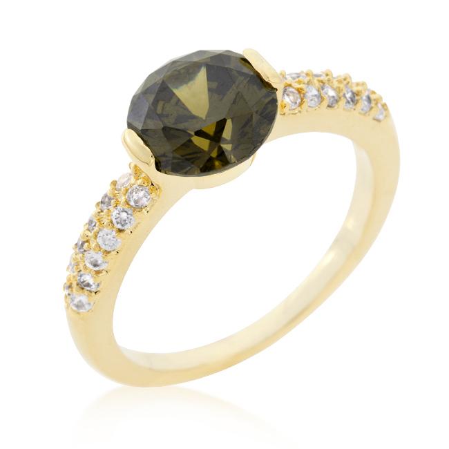 Feminine and elegant. Simple and sophisticated. Fashioned in luminous cubic zirconia this engagement ring is a lovely addition to any collection. 18k plated gold is achieved using an electroplating process that coats the item with heavy layers of 18k Yellow Gold and color-treated to display a perfect 14k Hamilton gold color.