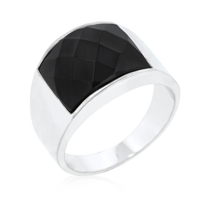 Simple yet chic this simple onyx cocktail ring cut has just the right amount of shine for everyday wear. Our genuine rhodium finish is achieved using an electroplating process that coats the item with heavy layers of rhodium a close cousin to platinum which gives our jewelry a platinum luster.