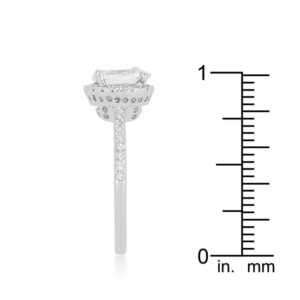 This halo style engagement ring is fashioned with round cut cubic zirconia and an infinity twisting shank. All stones are handset to perfection. Our genuine rhodium finish is achieved using an electroplating process that coats the item with heavy layers of rhodium a close cousin to platinum which gives our jewelry a platinum luster.