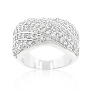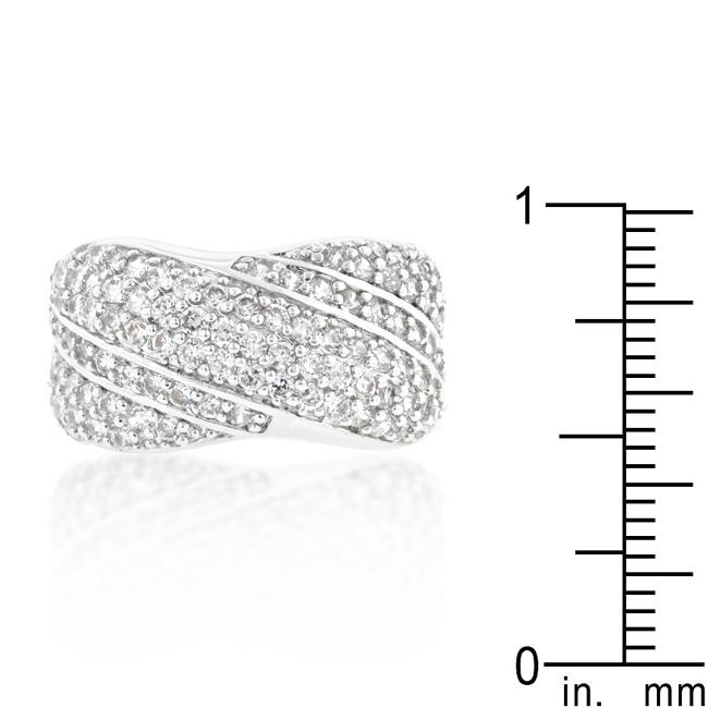 Pave set cubic zirconia stones in a diagonal design mingle together to create this classic cocktail piece. Our genuine rhodium finish is achieved using an electroplating process that coats the item with heavy layers of rhodium a close cousin to platinum which gives our jewelry a platinum luster.