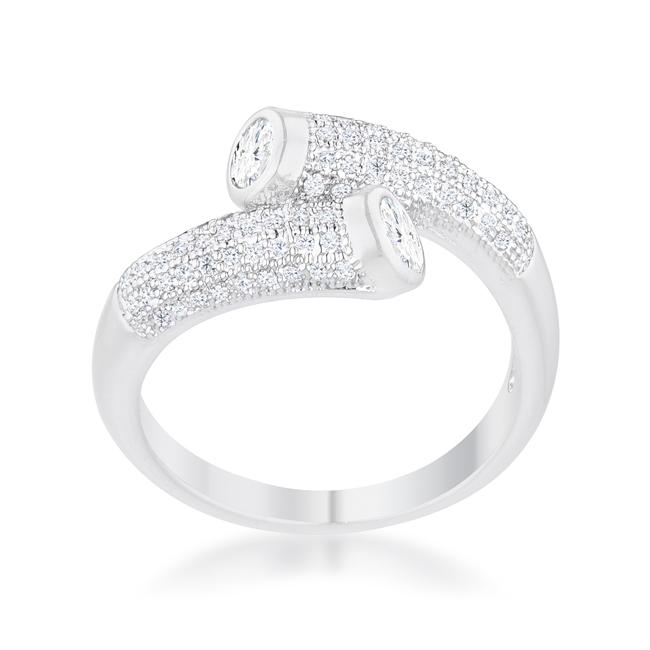 Small delicate stones accent the band of a contemporary wrap ring while bezel-set stones top off the design.
